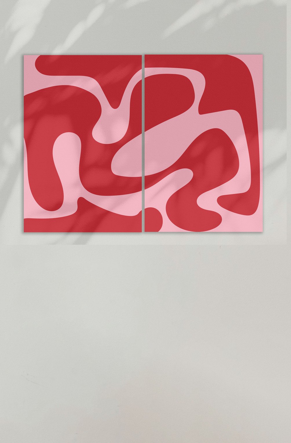 2 PEICE RED PINK WALL ART COLORFUL PRINTABLE ART